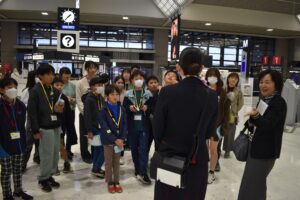 ターミナル見学の後は、普段は立ち入ることのできないランプセントラルタワーを見学しました。空港で働くスタッフの方々との質疑応答を通じて、空港の安全を支える仕事の重要性や、グローバルな仕事の現場を肌で感じることができました。ランプセントラルタワーから間近で離陸を見学したり、空港内で貨物専用機を知るなど、空港の広大さと迫力を体感する貴重な探求活動となりました。