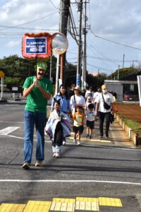 「アーブル英会話スクール Halloween Parade」のプラカードを先頭に、地域を元気よくパレードをしました。
